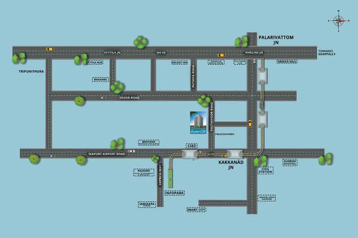Are you looking for a medium budget, luxury apartment in Kochi? Your search ends at Palachuvadu, Kakkanad where Varma Homes, Kerala's most trusted builder brings their latest addition in the vertical of affordable luxury with Varma Avenue. An affordable luxury residential apartment project which offers 77 units of 2, 2.5 and 3 BHK apartments-that's what Varma Avenue has in store for you. The single tower, with lower ground, ground and 13 floors building offers 38 units of 2 BHK, 13 units of 2.5 BHK and 26 units of 3 BHK apartments that ranges between 1054 sq. ft. to 1587 sq. ft. With road transport, railway station, and metro services in close proximity, and centres of education, healthcare and infotainments within a short reach, Palachuvadu, Kakkanad is that spot in Kochi where you can breathe in connectivity and conveniences in one go.