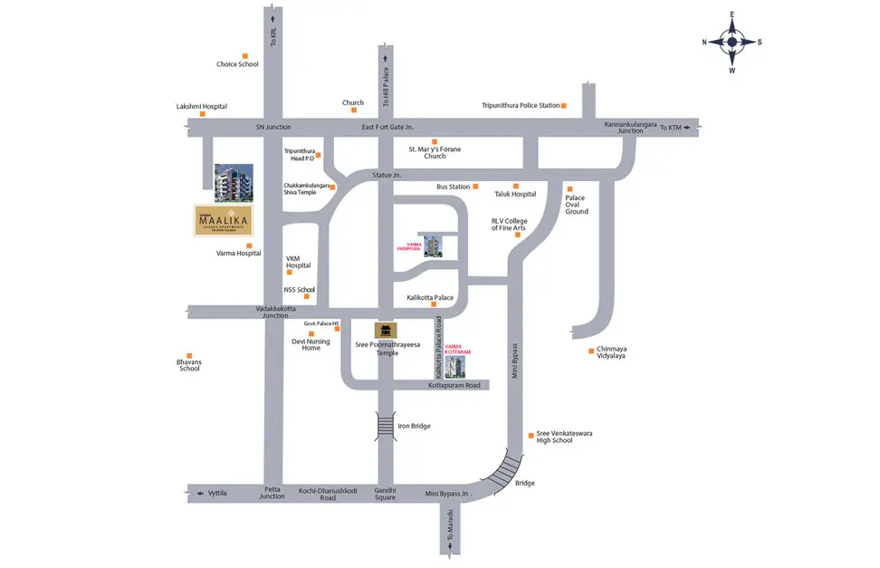 Varma Maalika Block I is located at S.N Junction Tripunithura, Kochi. With close proximity to the Kochi Metro, temples, shopping malls and schools this residential property has almost everything a royal lifestyle demands. Varma Maalika Block I has completed ahead of schedule and was inaugurated on 25 February 2018.