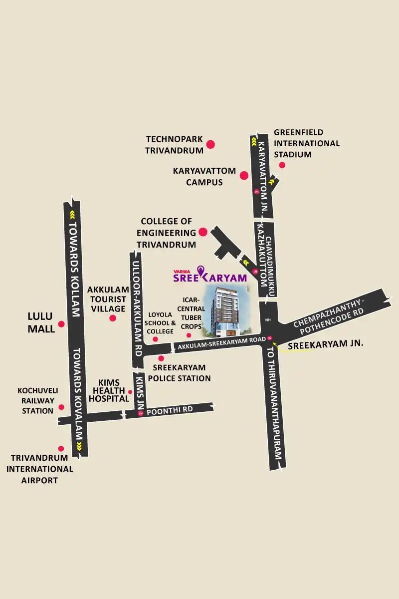 Varma Sreekaryam is a 2/3 bhk luxury apartment project located at Sreekaryam, Trivandrum. It offers you the experience of peaceful living and has a range of luxury amenities including club house, roof top children's play area, rooftop party area, terrace garden and indoor games area. Live Peacefully Varma Homes presents Varma Sreekaryam luxury apartments in the holy abode of Sreekaryam, Trivandrum. Comes with 26 units of 2 BHK apartments and 3 BHK apartments. basement, ground and first floor are completely allocated for parking. The 2nd and 3rd floors are allotted for commercial purpose and 4th to 10th residential purpose. For you with all needs for a peaceful plush living. Experience a pleasant lifestyle at one of Trivandrum's calmest locale. Move Peacefully Sreekaryam, is located at the key locale of Trivandrum city away from the hassles and bustles of the urbs. Where you can experience a peaceful living, connecting major spots of the city. Hospitals, Educational institutions, Economic Centres everything that you need to live happily and peacefully are within easy reach. Feel the Grandness Get ready to indulge in the grandness at Varma Sreekaryam.