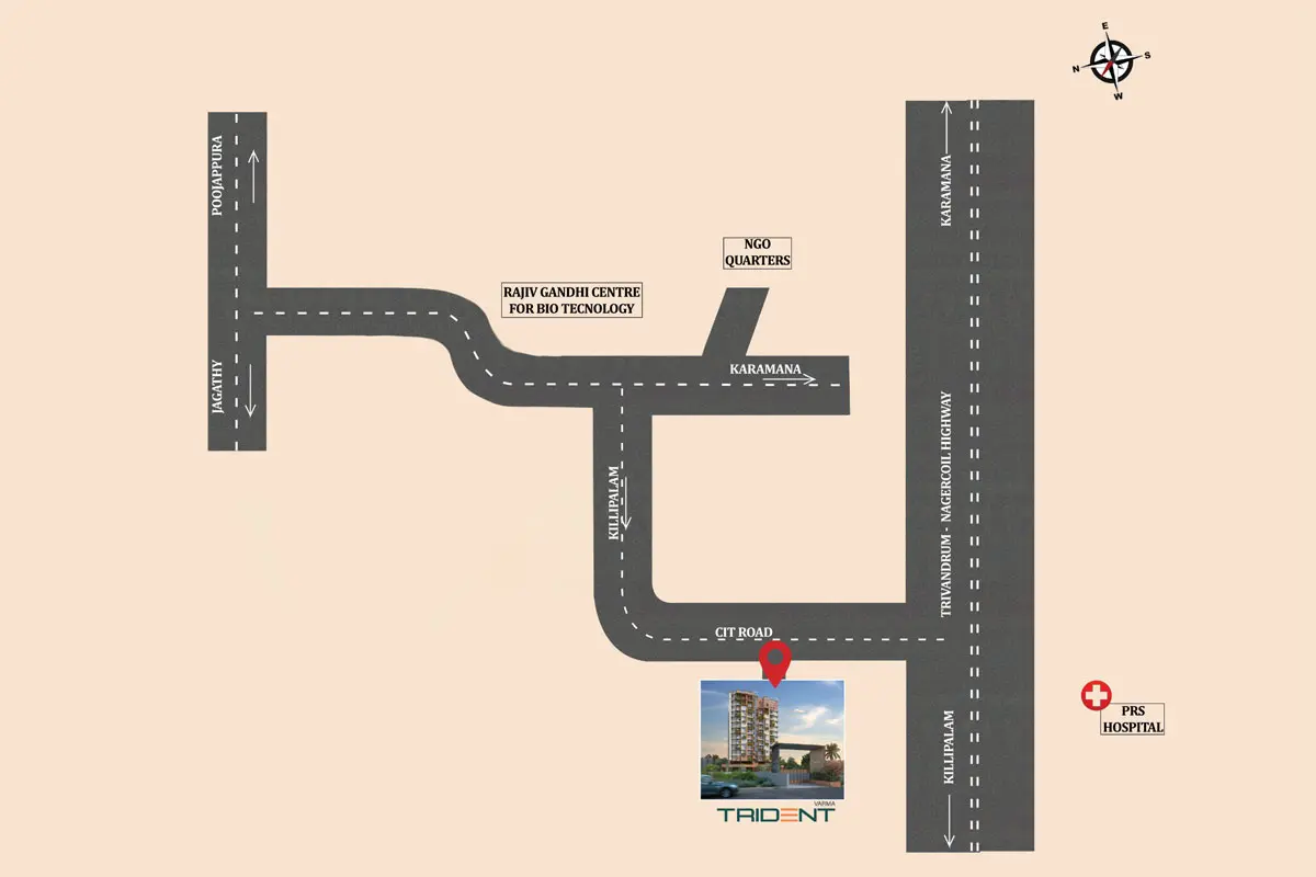 Steeped in tradition and embracing modernity,Thiruvananthapuram is one of the most sought after locations for residential choice. World class education, healthcare, infrastructural developments on one side yet keeping culture and tradition in its core with museums, temples, other architectural excellences etc. Varma Trident located in Jagathy, Thiruvananthapuram is a complete package of luxury that you will ever dream of. The single tower in an area of 48.38 cents with ground + 13 floors offers 42 units of 2 & 3 BHK luxury apartments which speaks of luxury, convenience and comfort at its best. City in a short drive is why real estate developers prefer potential spots in Thiruvananthapuram for their constructions. Jagathy is no exception. Located at Jagathy, Varma Trident is bringing in an option of peacefut yet luxurious life in the city of Thiruvananthapuram. With travel accessibilities via train, buses, taxis etc intra and inter city connectivity is a matter of no worry. This location also promises fulfillment of all your necessities in handy. World class educational centres, hospitals and other speciality care centres, infrastructural developments are on the go in Thiruvananthapuram. Not just this, you have countless places for leisure, entertainment and hangout. No more running errands to get what you need, you'll get everything pretty accessible. Here's, your life convenience at your doorstep. Amenities aplenty for an easeful and stress-free life makes you feel engulfed in peace and fulfillment. A well-equipped fitness centre for an effortless workout, an open rooftop for partying, a well organised play area for your kids, a well maintained conference hall for official gathering, a landscaped yard for your 'me time'- there's everything that makes your life comfortable at Varma Trident.