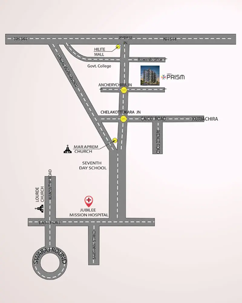 Varma Prism, the 15-storey luxury residential apartment project with 117 units of 2 & 3 BHK apartments is the newest launch from Varma Homes in Thrissur. Close to the city yet away from the hustle-bustle, it offers facilities such as a kids play area, jogging track, cricket practice nets, open gym etc. nestled amidst lush landscaped gardens-all designed to add cheer and convenience to your everyday life. Nestled in a tranquil locale at Ancherychira, Thrissur where luxury blends perfectly with serenity, Varma Prism has around you every modern convenience that you will ever look for. At Varma Prism, access to conveniences of life-education, health care, shopping, entertainment and infrastructural development-is ensured within an easy reach so that you can enjoy an effortless lifestyle. Designed for those who seek more than just a home, Varma Prism has an array of amenities offering leisure to luxury, health, hygiene and safety. Here's your home where comfort and luxuriousness are perfectly blended for you to have a balanced lifestyle.